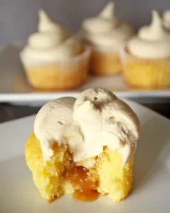 Caramel Filled Cupcakes with Whipped Caramel Frosting