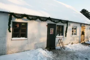 Here are some photos from our Christmas market last weekend. We used the old garage (charming – but would have looked great in one of these log cabins, too!) and it looked really pretty with all the snow. I made two small gingerbread houses and some gingerbread cookie hearts.